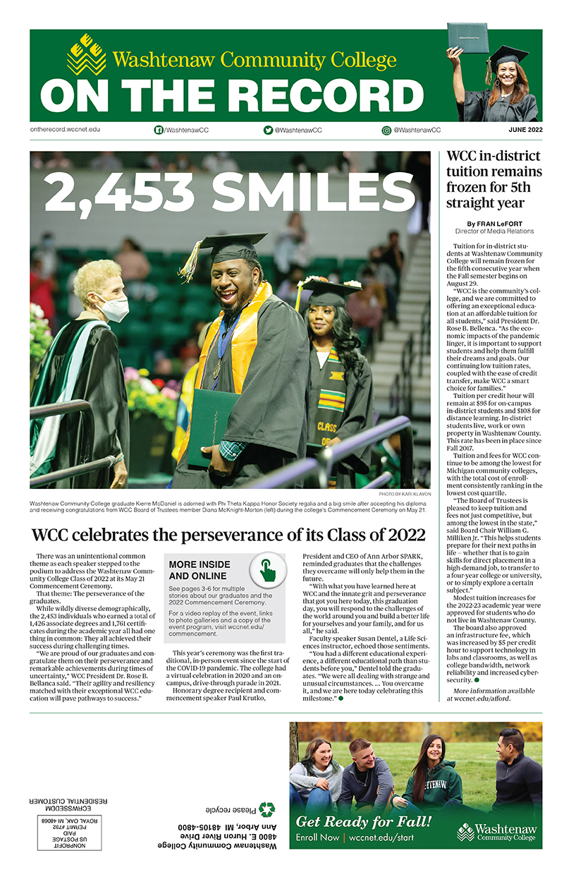 On The Record is written and designed by the WCC Marketing and Communications Department. The publication is distributed throughout the WCC campus and Washtenaw County.